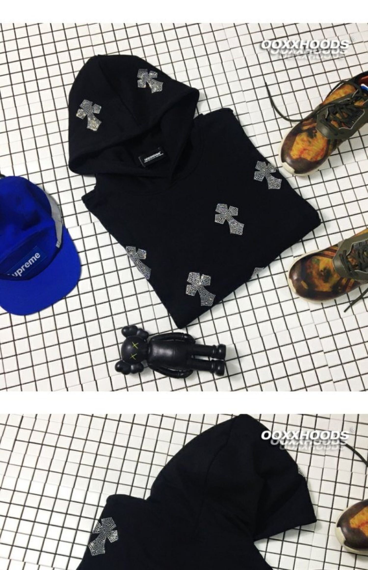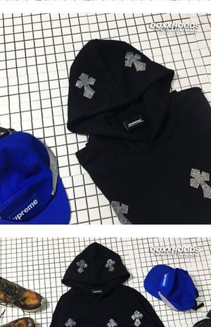 クロスブラックルーズフードカジュアルセーター SMLXL67173568632
