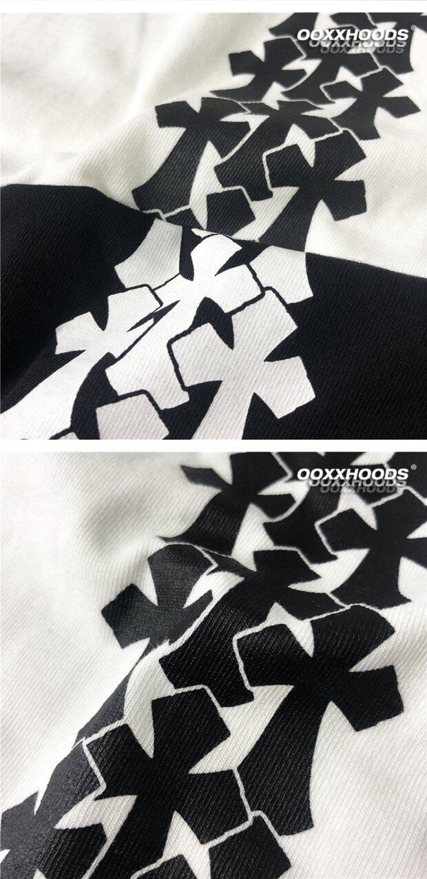 ブラックホワイトプリントルーズTシャツ コットン SMLXL4952427386