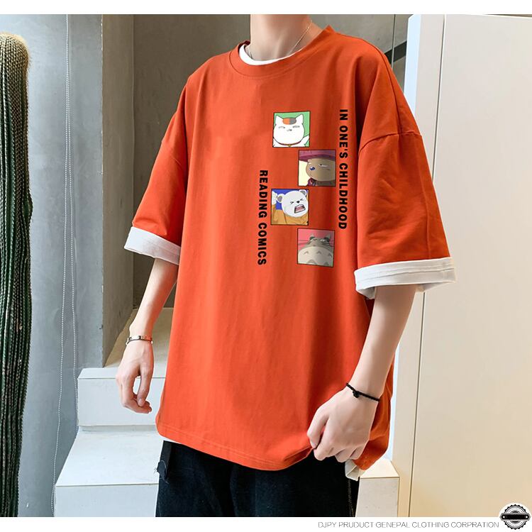 シャツ ルーズラウンドネックTシャツ サマー コットン 大きめサイズ 夏物 Oネック ヒップホッププラスサイズ77561899142