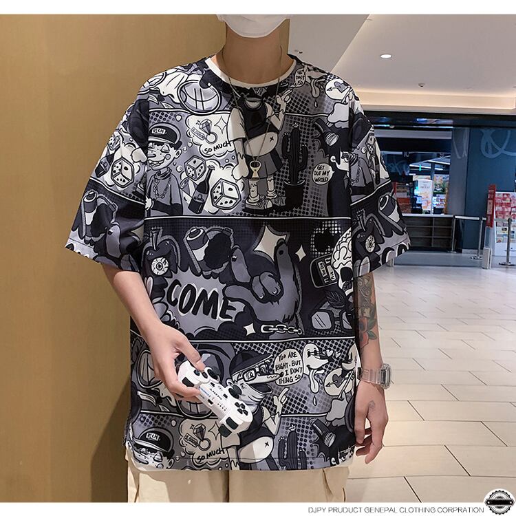 Tシャツ ルーズプリントトップス サマー 大きめサイズ 夏物 ヒップホッププラスサイズ43427579059