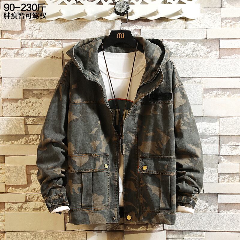 迷彩柄ジャケット ルーズフードスタンダードスプリングオータム レトロ 大きめサイズ 春物 秋物 ヒップホッププラスサイズ14603556916