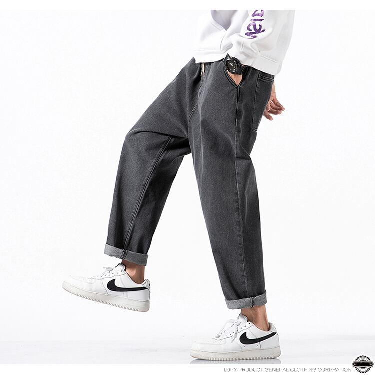 ブラックジーンズ ルーズカジュアルパンツ スプリングオータムスタイル 大きめサイズ 春物 秋物 ヒップホッププラスサイズ41020252801