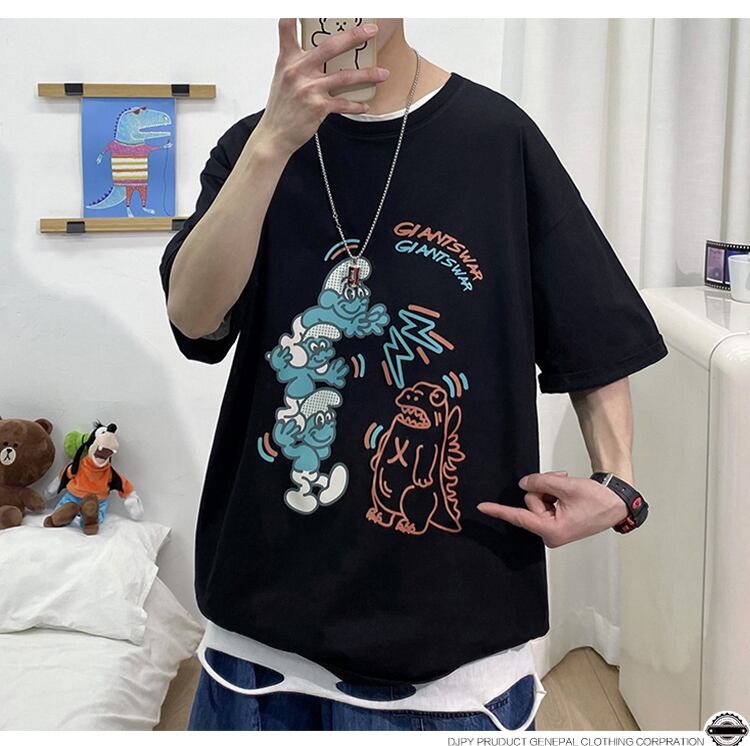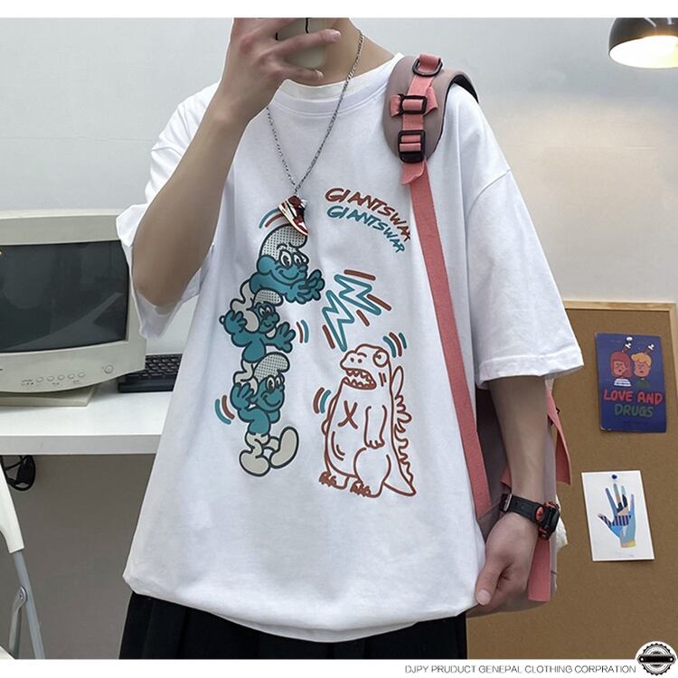 Tシャツ ルーズラウンドネックプリント柄トップス サマー 大きめサイズ 夏物 Oネック ヒップホッププラスサイズ32192553552