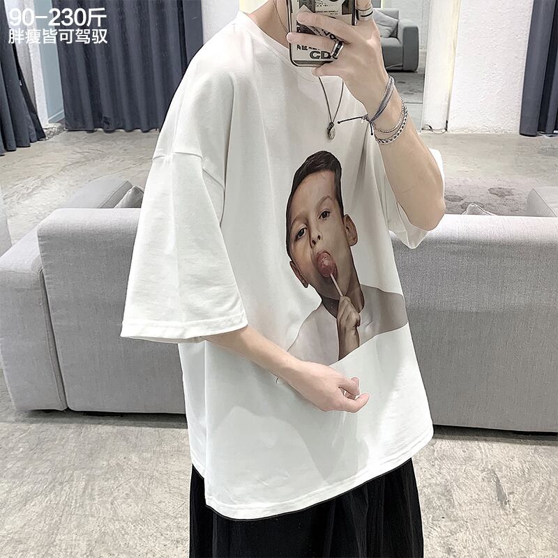 Tシャツ ルーズプリント柄サマー 大きめサイズ 夏物 ヨーロピアン ヒップホッププラスサイズ3385185143