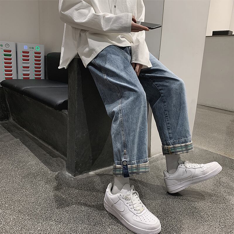 ジーンズ ルーズ格子柄スプリングオータム 大きめサイズ 春物 秋物 ヒップホッププラスサイズ11942888138
