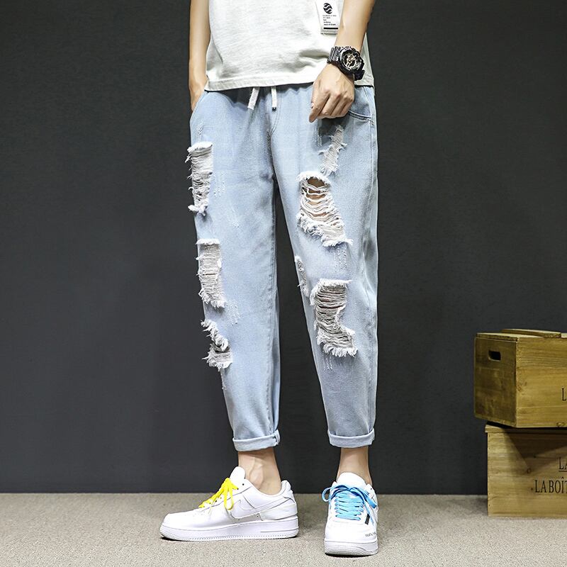 ジーンズ ルーズパンツ ストレッチウェストスプリングオータム エラスティック 伸縮 大きめサイズ 春物 秋物 ヒップホッププラスサイズ92556591322