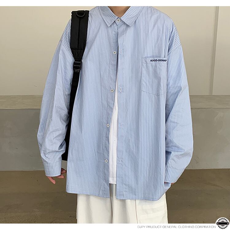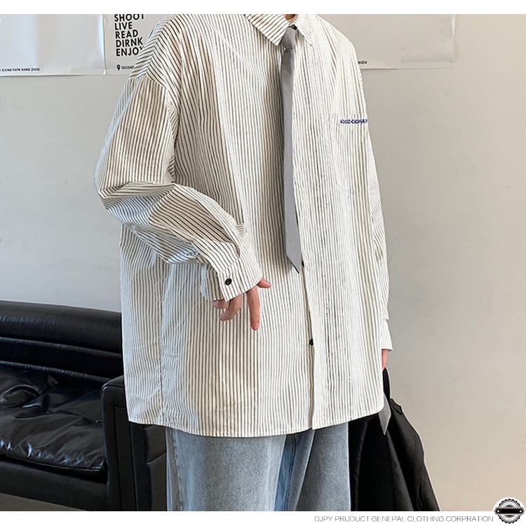 ストライプシャツ ルーズカジュアルスプリングオータム ロング レッド 刺繍 大きめサイズ 春物 秋物 ヒップホッププラスサイズ43982448376