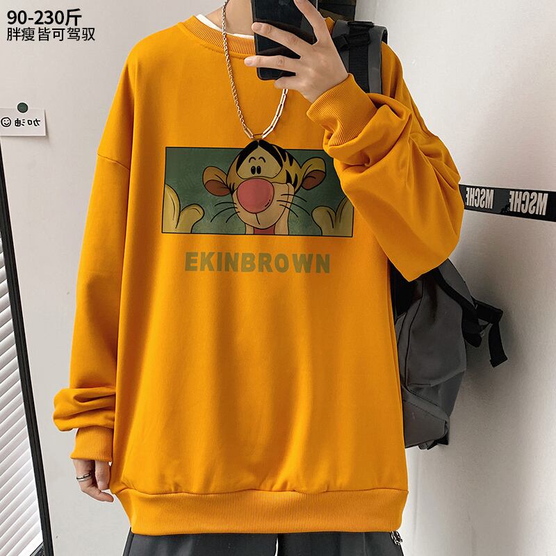 イエローセーター ラウンドネックルーズTシャツ スプリングオータム ロング 大きめサイズ 春物 秋物 Oネック ヒップホッププラスサイズ65706046561