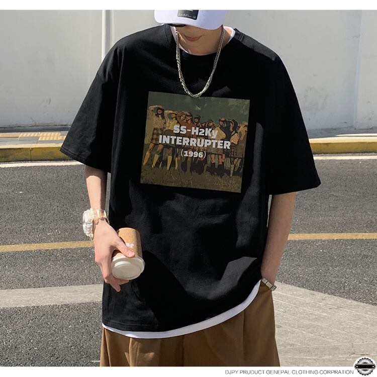 スタンダードプリントスリーブTシャツ カジュアルトップス サマールーズ半袖 レトロ ハーフスリーブ 大きめサイズ 夏物 ヨーロピアン ヒップホッププラスサイズ59487543400