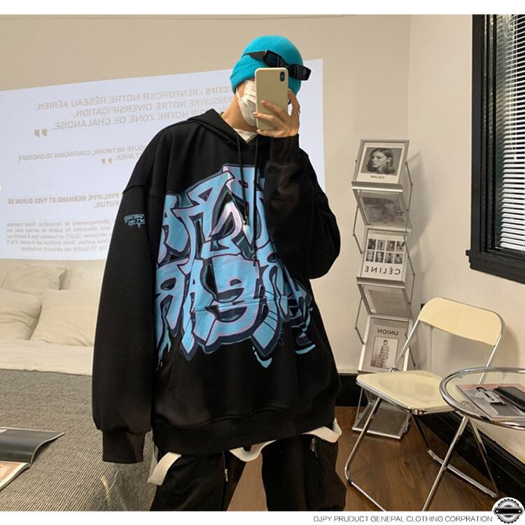プリントセーター フードルーズコート ジャケット スプリング 大きめサイズ 春物 ヒップホッププラスサイズ70990348716