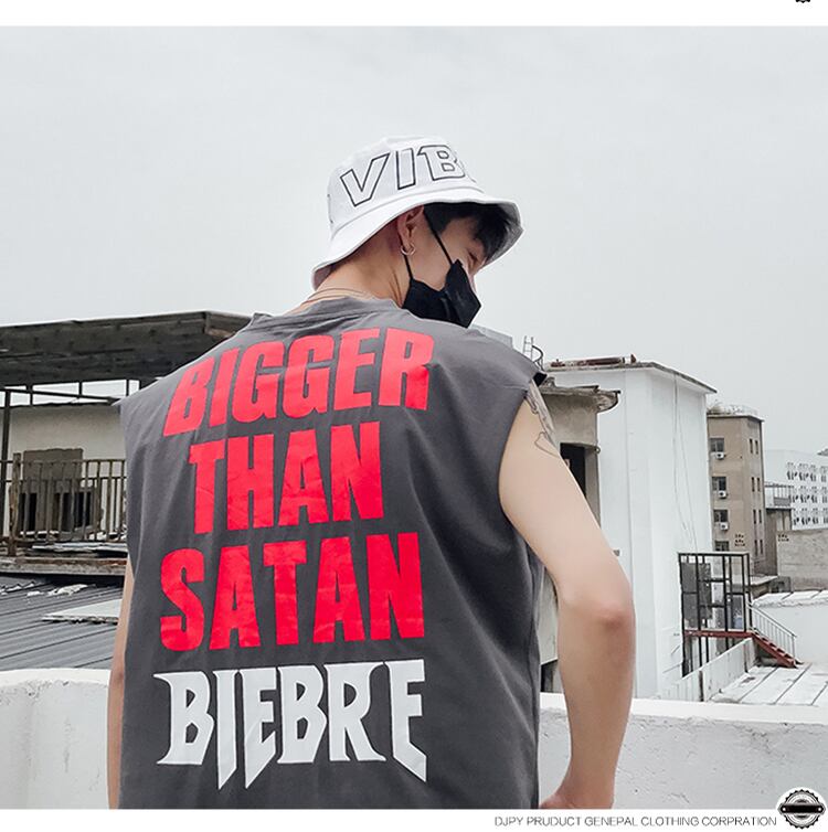 プリントサマールーズノースリーブTシャツ 大きめサイズ 夏物 ヒップホッププラスサイズ82669776450