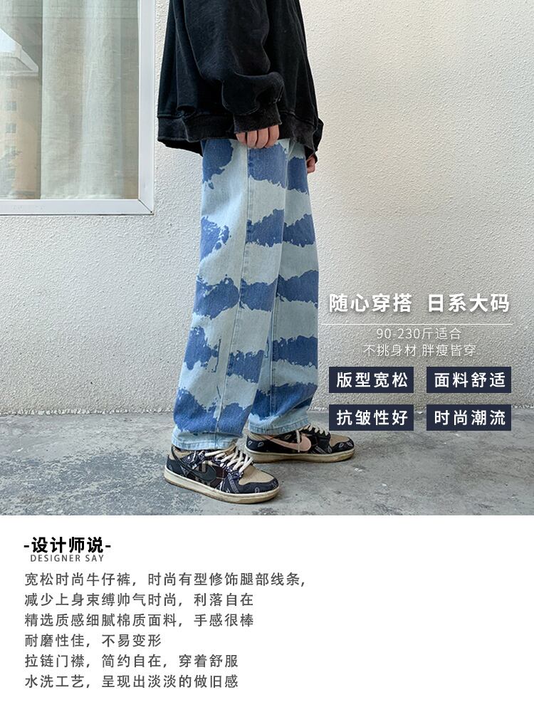 ブルーホワイトジーンズ ルーズカジュアルパンツ ストリート 大きめサイズ ヒップホッププラスサイズ80735418484