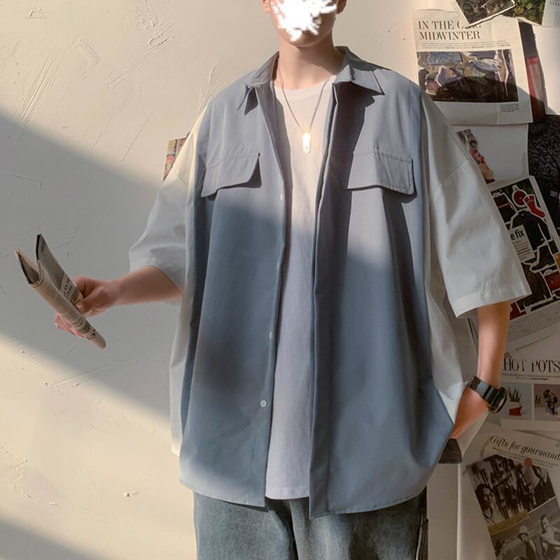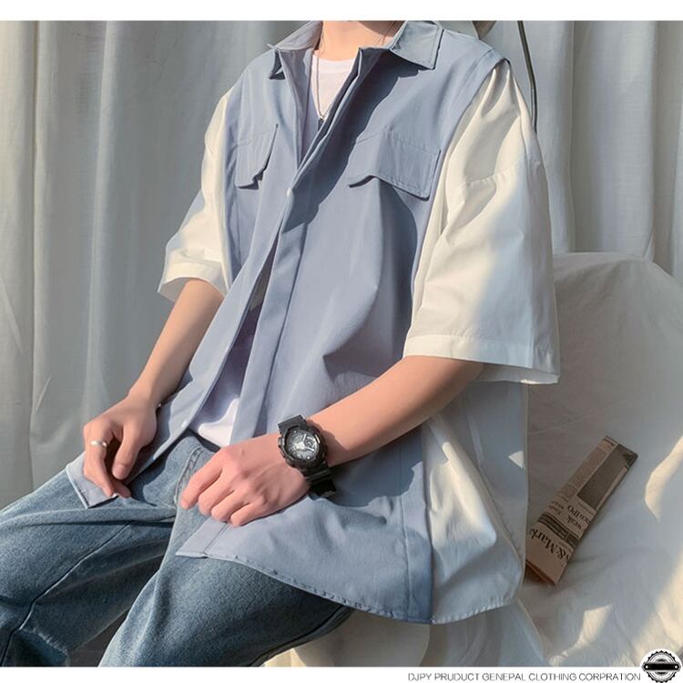 カラースリーブシャツ ルーズサマー 大きめサイズ 夏物 ヒップホッププラスサイズ49763671813