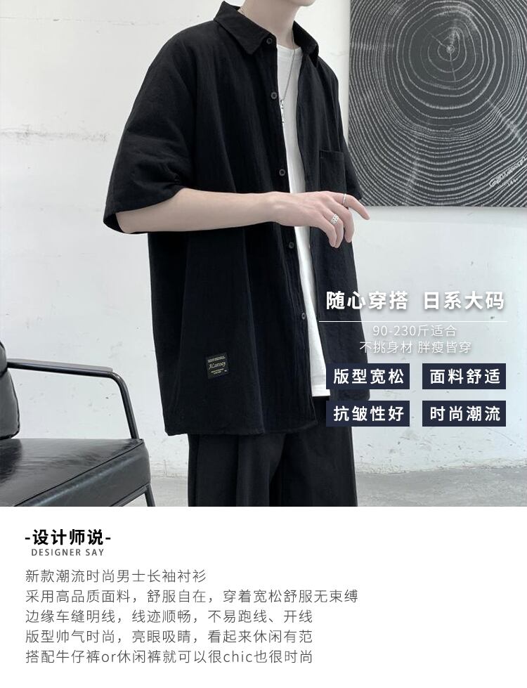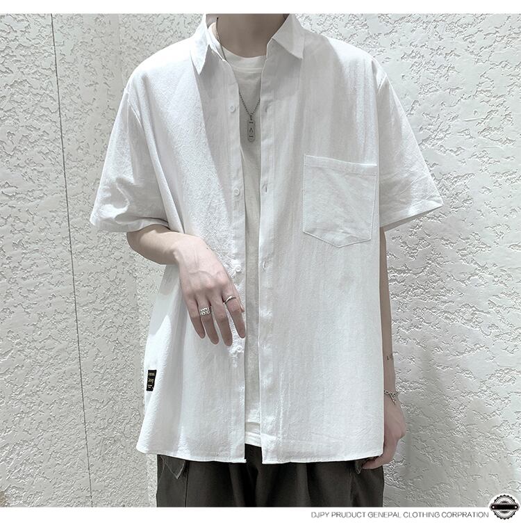 シャツ ルーズソリッド カラーカジュアルサマー 大きめサイズ 夏物 ソリッドカラー ヒップホッププラスサイズ78486083530