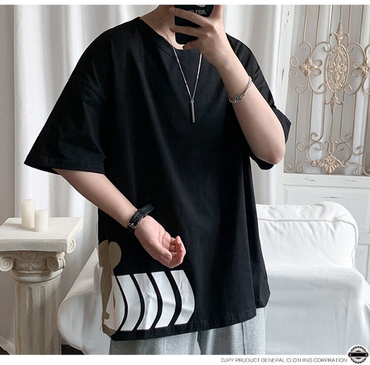 プリント柄Tシャツ サマートップス ルーズ 大きめサイズ 夏物 ヒップホッププラスサイズ36107423702