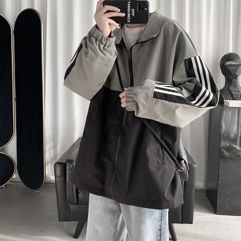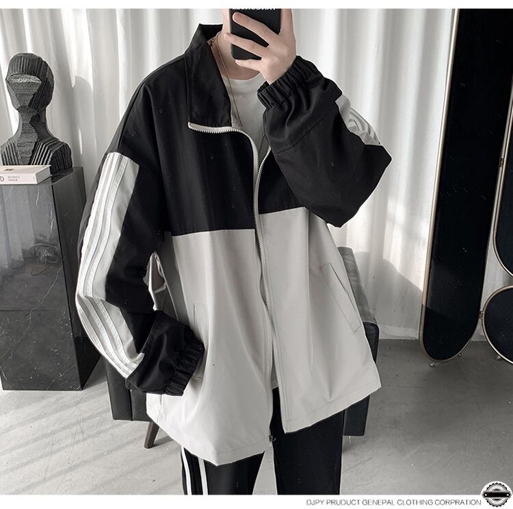 ジャケット ルーズカラーサイドストライプカジュアルスプリングオータム 大きめサイズ 春物 秋物 ヒップホッププラスサイズ71457251129