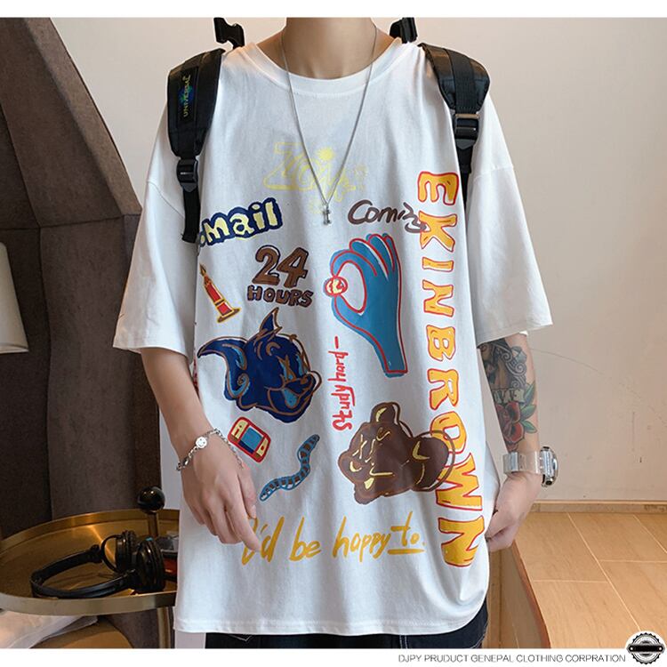 ルーズプリントTシャツ サマー 大きめサイズ 夏物 ヒップホッププラスサイズ63005675669