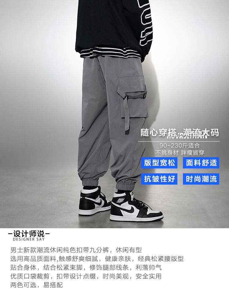 サマーロングパンツ ルーズカジュアルスプリングオータムダークブラック 大きめサイズ 春物 夏物 秋物 ポケット多め マルチポケット ヒップホッププラスサイズ57578515416