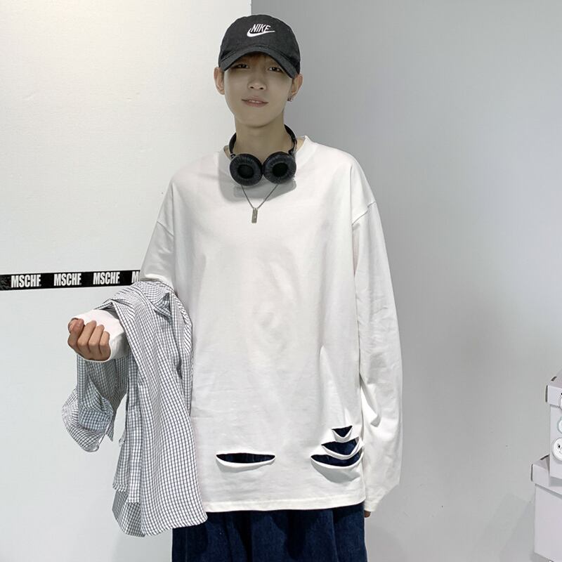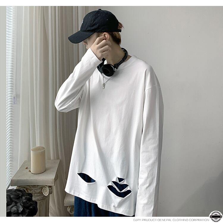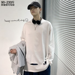 Tシャツ シャツ ルーズソリッド カラーラウンドネックスプリングオータム ロング 大きめサイズ 春物 秋物 Oネック ソリッドカラー ヒップホッププラスサイズ3554087313