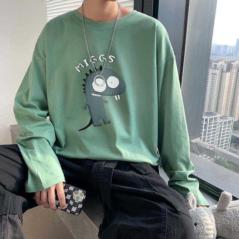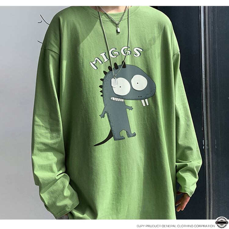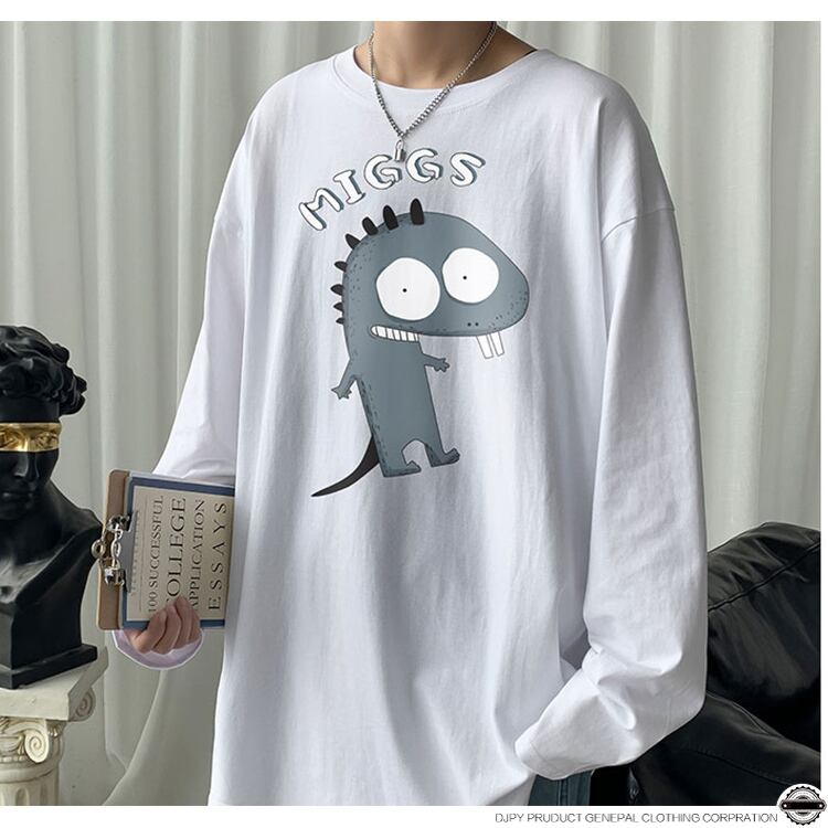 Tシャツ シャツ ルーズラウンドネックスプリングオータム ロング 大きめサイズ 春物 秋物 Oネック ヒップホッププラスサイズ10970739564