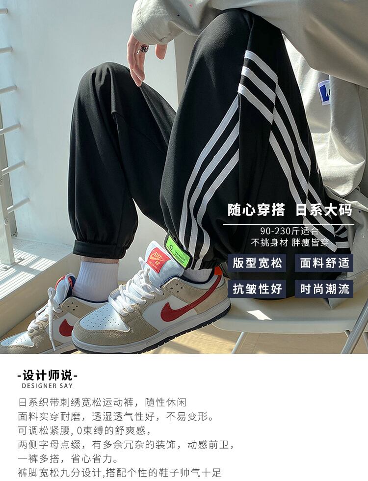 ストライプルーズカジュアルパンツ サマー薄手 大きめサイズ 夏物 ヒップホッププラスサイズ42765787042