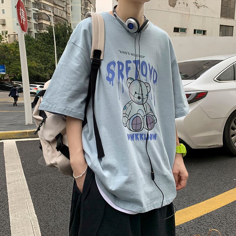 サマーTシャツ シャツ スタイルルーズラウンドネック コットン 大きめサイズ 夏物 Oネック ヒップホッププラスサイズ10134448623