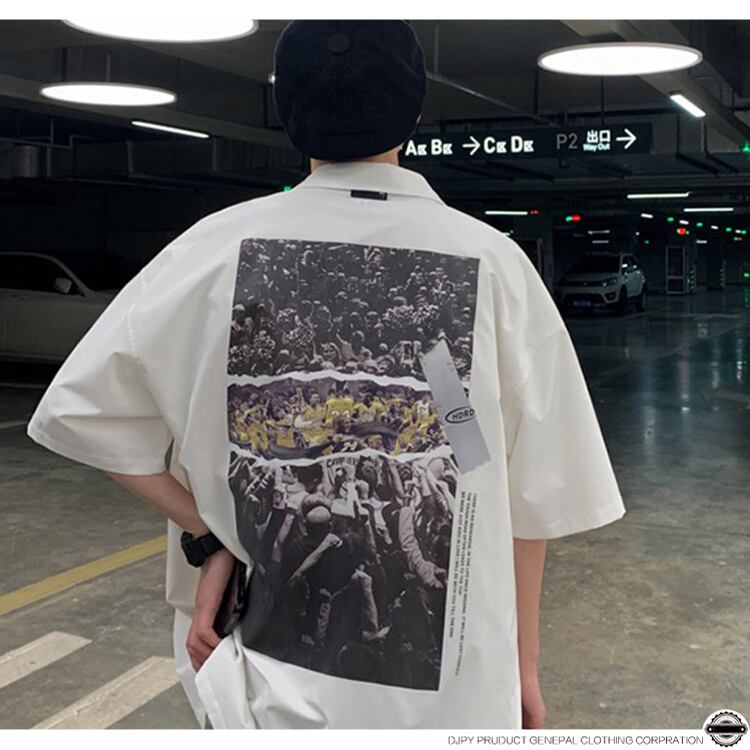 バックプリント柄シャツ サマールーズスタイルカジュアルジャケット 大きめサイズ 夏物 ヒップホッププラスサイズ7522856584