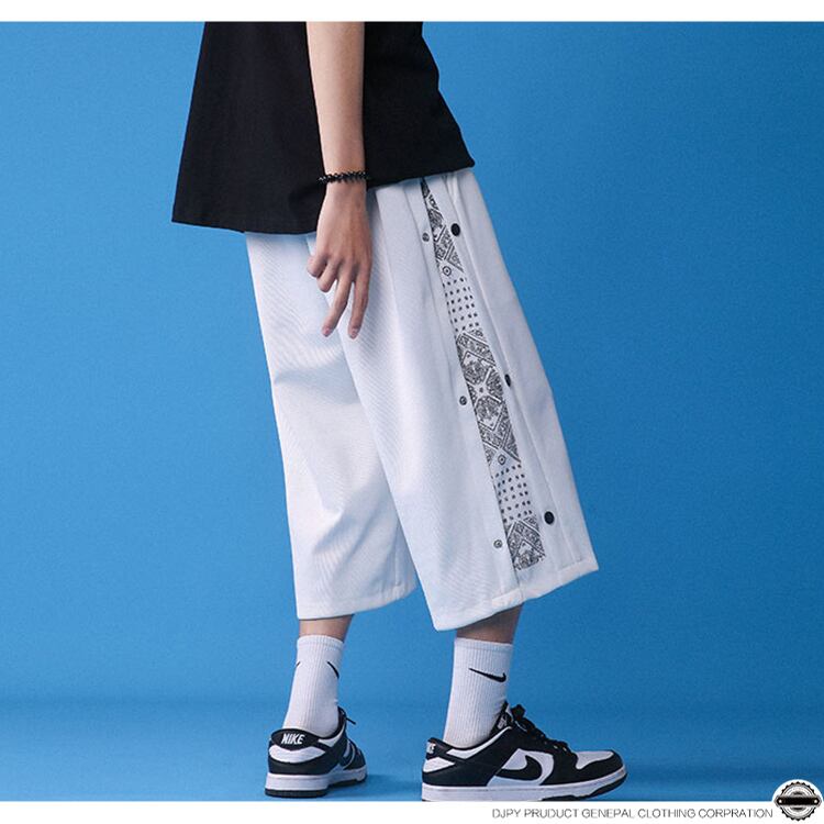 Flowerデザイン ブレストショーツ サマー薄手ルーズクロップドパンツ ストリート 大きめサイズ 夏物 ブルマー フラワーデザイン ステッチ ヒップホッププラスサイズ95208712907