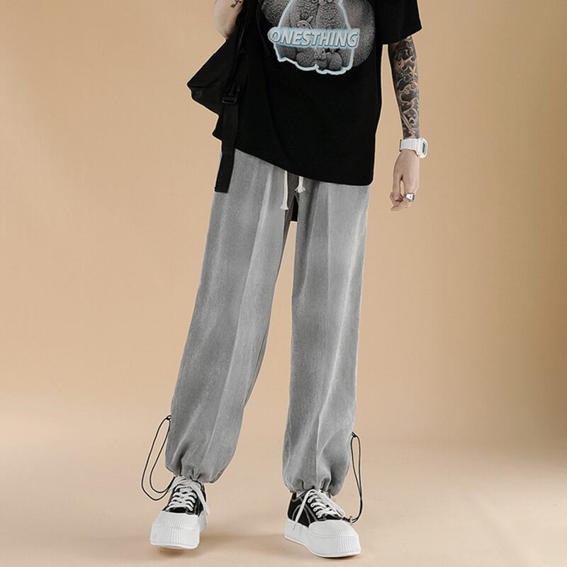 ソリッド カラーパンツ サマー薄手カジュアルルーズ 大きめサイズ 夏物 シルク ソリッドカラー ヒップホッププラスサイズ8326850915