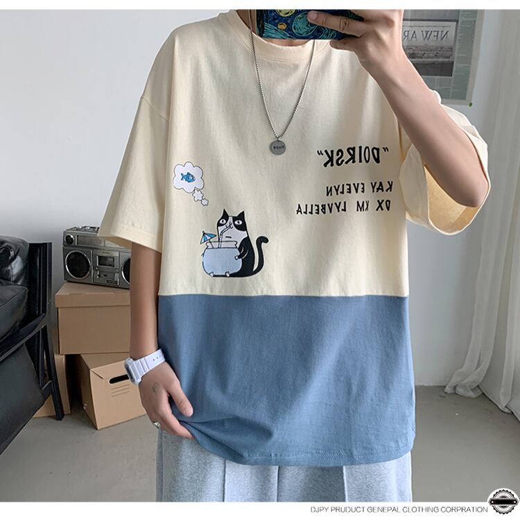 サマーTシャツ ルーズカラーラウンドネック 大きめサイズ 夏物 Oネック ヒップホッププラスサイズ77163434894