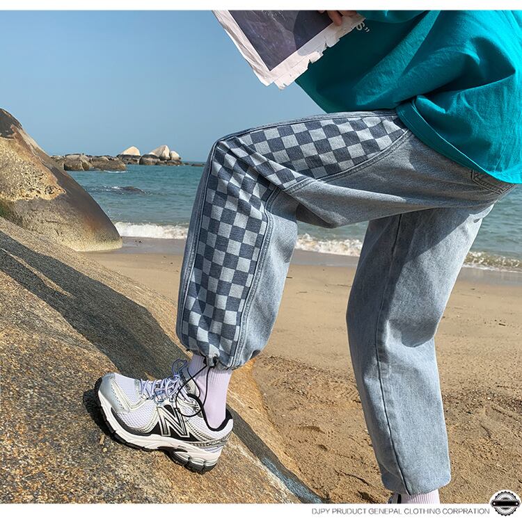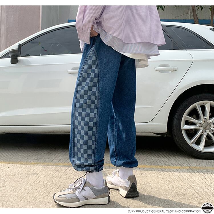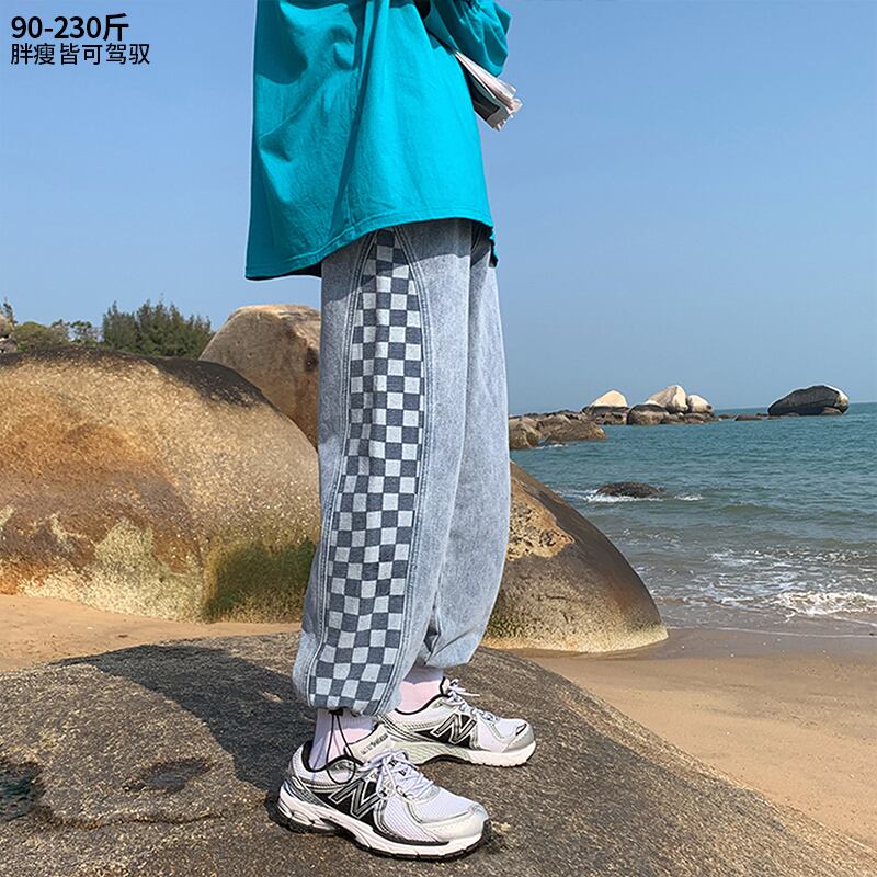 ジーンズ サマーカジュアルパンツ ルーズ薄手スタンダード格子柄 レトロ 夏物 ステッチ ヒップホッププラスサイズ4278367932