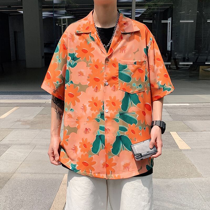 Flowerデザイン シャツ サマールーズ 大きめサイズ 夏物 フラワーデザイン ヒップホッププラスサイズ40678841740