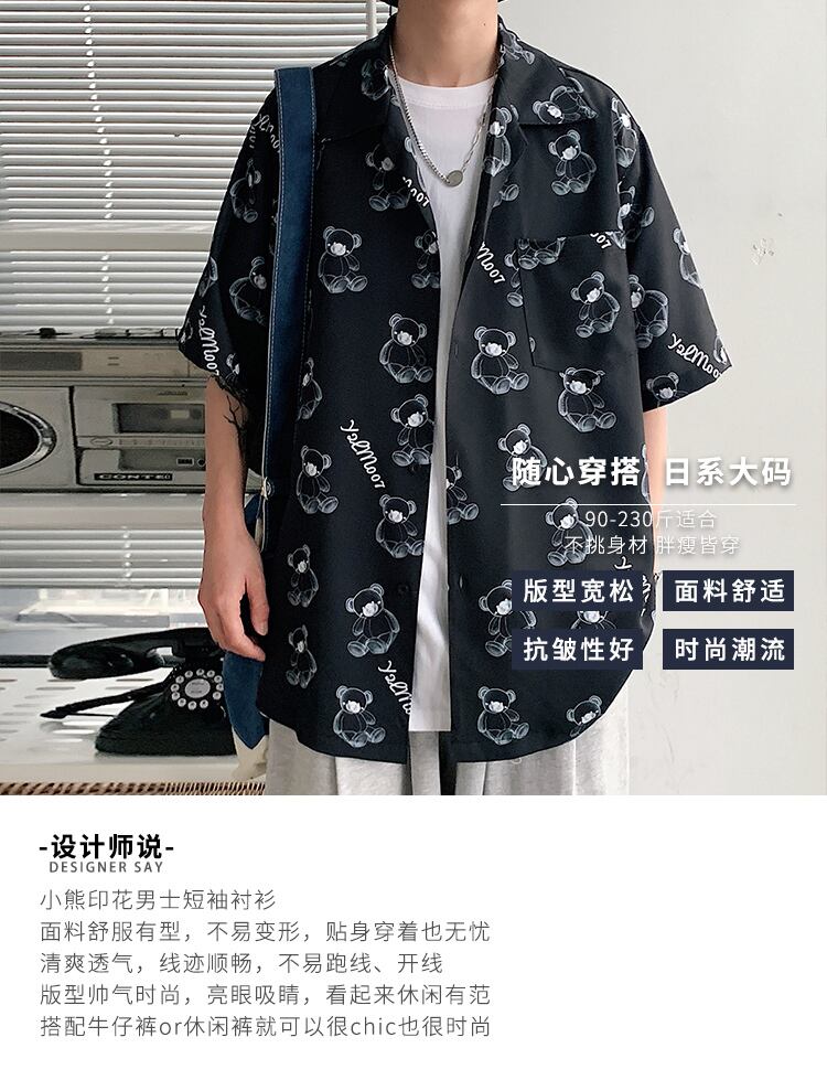 プリント柄シャツ サマールーズトップス 大きめサイズ 夏物 ヒップホッププラスサイズ12043793021