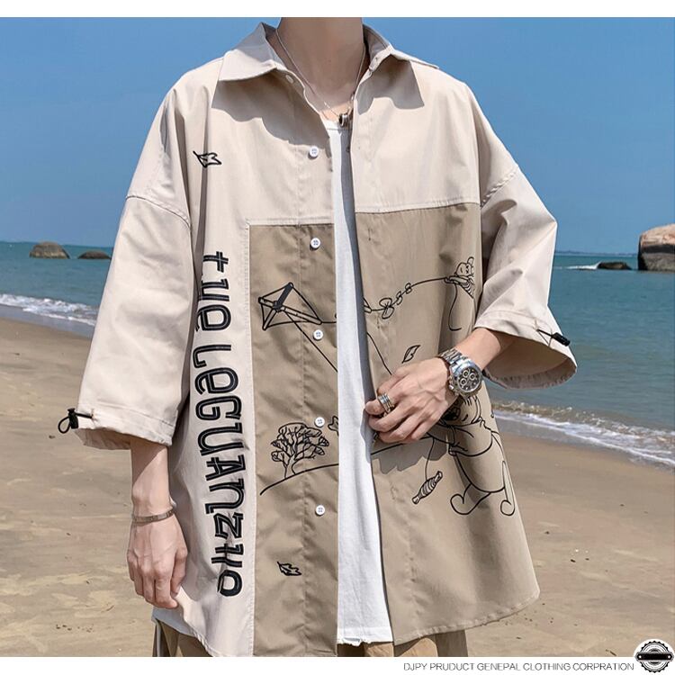 カラースリーブシャツ サマールーズ 大きめサイズ 夏物 ヒップホッププラスサイズ59318353989