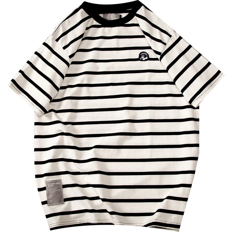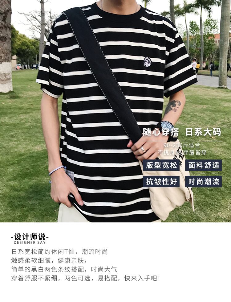 サマースリーブTシャツ シャツ ルーズストライプ半袖 ハーフスリーブ 大きめサイズ 夏物 ヒップホッププラスサイズ10508913954