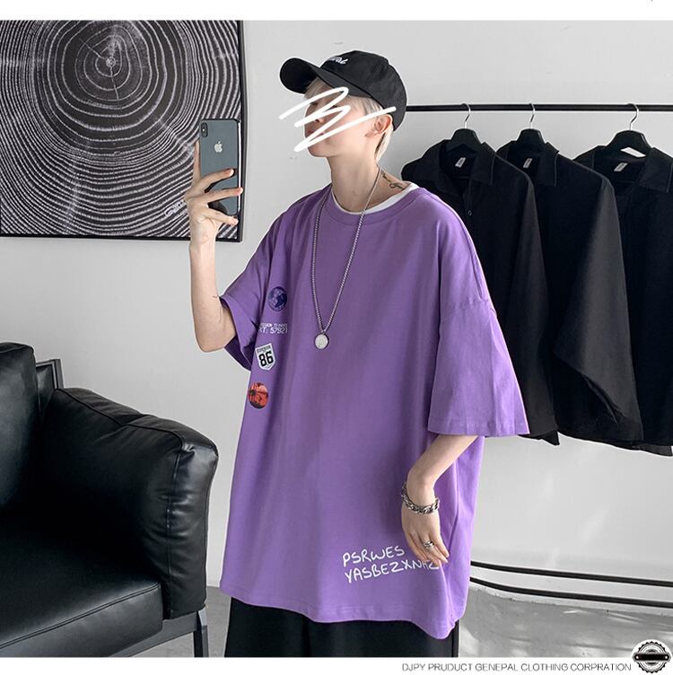 ホワイトスリーブスタイルサマールーズシャツ ラウンドネックTシャツ 大きめサイズ 夏物 Oネック ヒップホッププラスサイズ46932098010