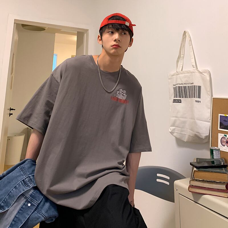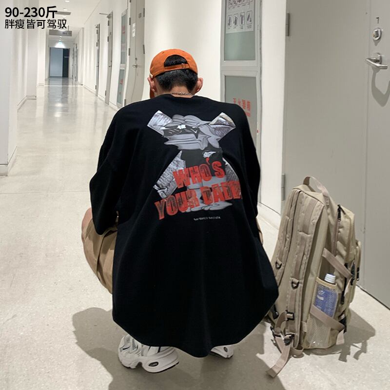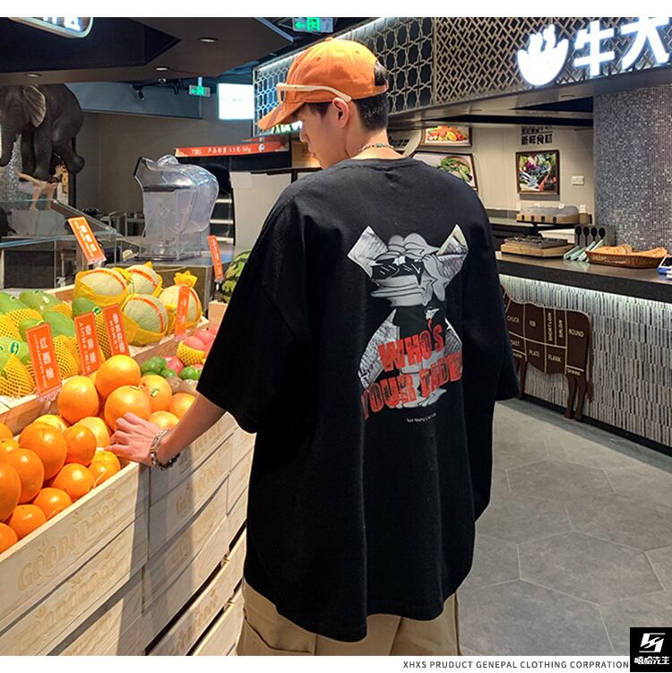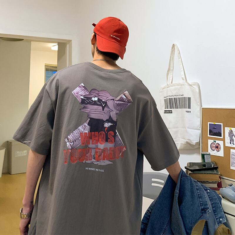 サマープリントTシャツ ラウンドネックルーズ ストリート 大きめサイズ 夏物 Oネック ヒップホッププラスサイズ37116282065