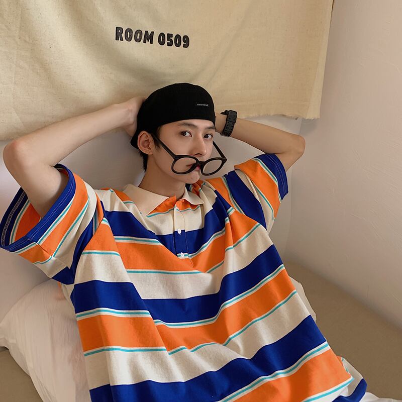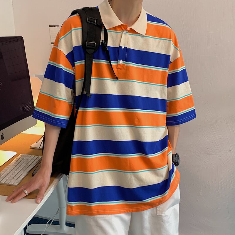 ストライプシャツ サマーTシャツ トップス ルーズ 大きめサイズ 夏物 ヒップホッププラスサイズ23839697184
