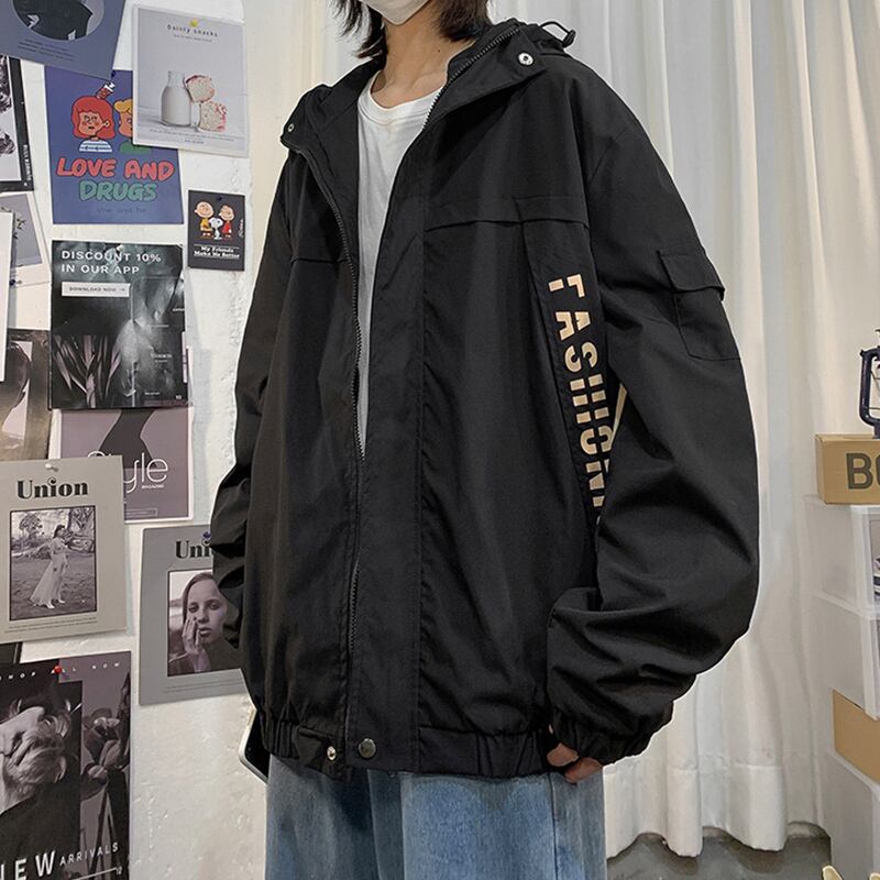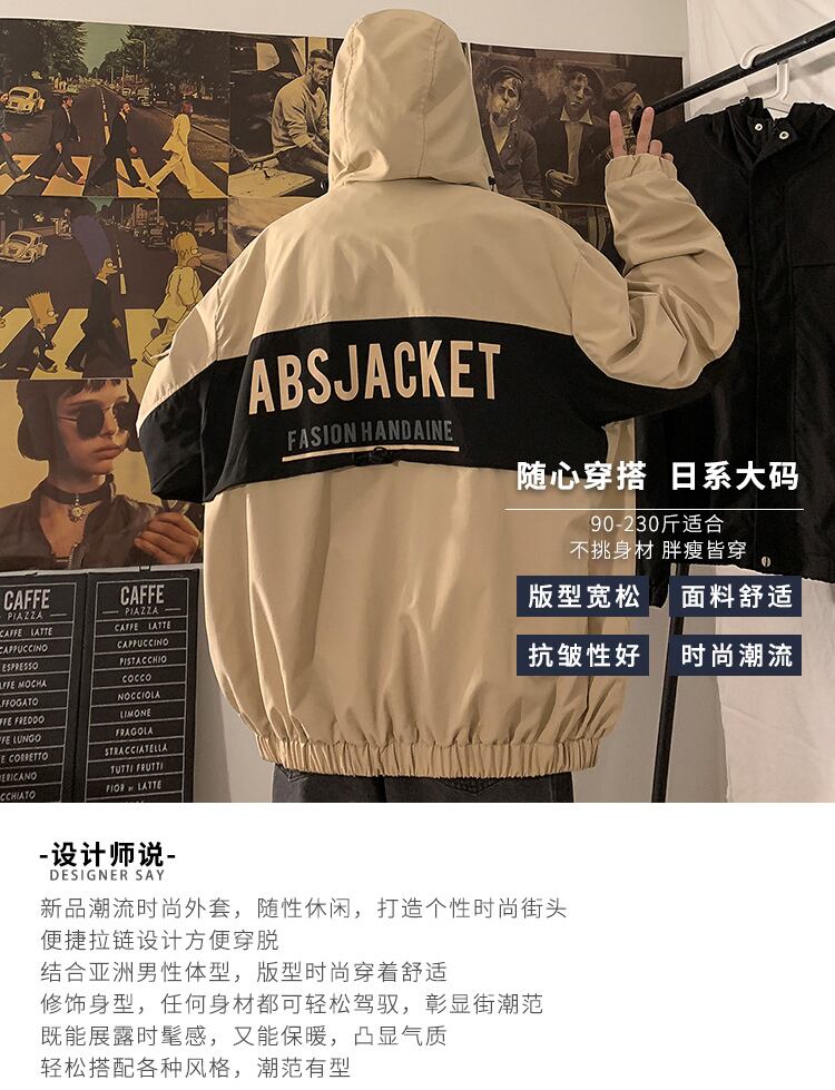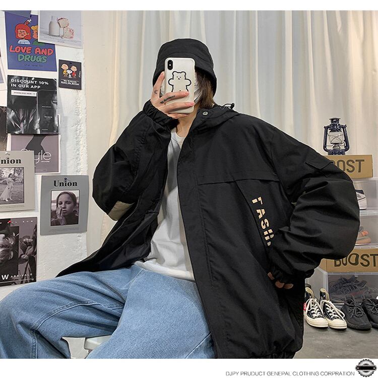 ジャケット ルーズカジュアルカラーフードトップス スプリング 大きめサイズ 春物 ステッチ ヒップホッププラスサイズ10419499565