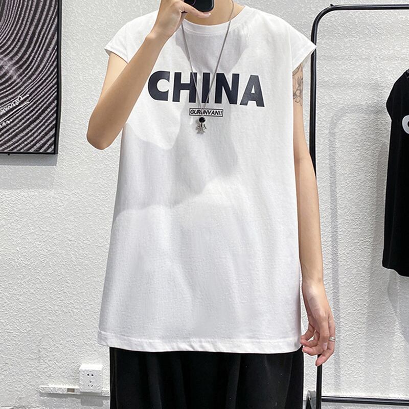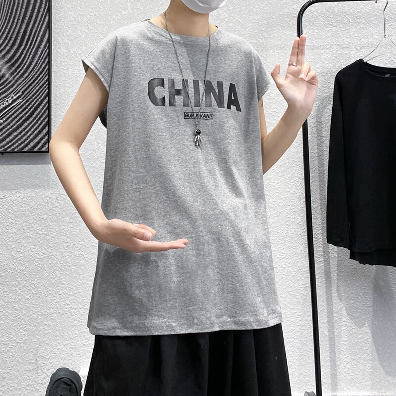 サマーノースリーブTシャツ スタイルプリントルーズ 大きめサイズ 夏物 ヒップホッププラスサイズ46290303496