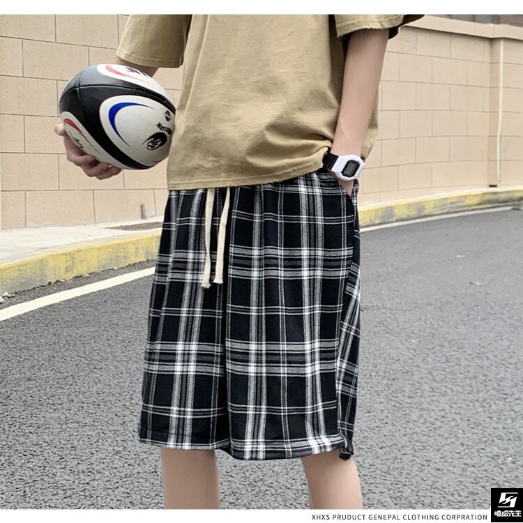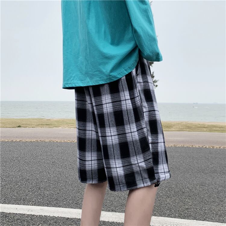 サマーギャザー格子柄カジュアルショーツ パンツ ルーズ 大きめサイズ 夏物 ブルマー ヒップホッププラスサイズ97431563909
