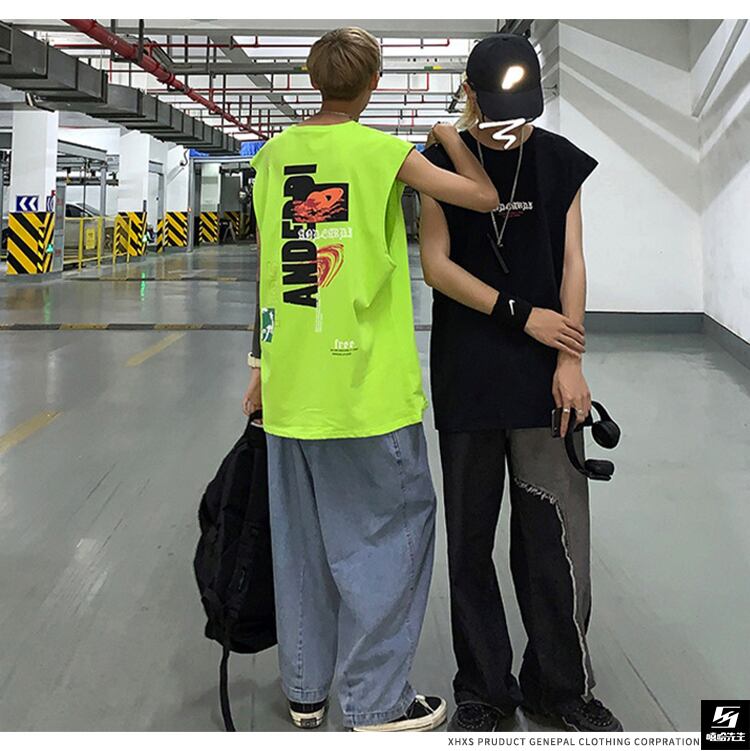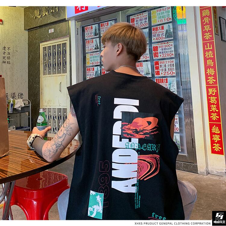 プリントサマーノースリーブTシャツ カジュアルスタイルルーズ 大きめサイズ 夏物 ヒップホッププラスサイズ3405113838