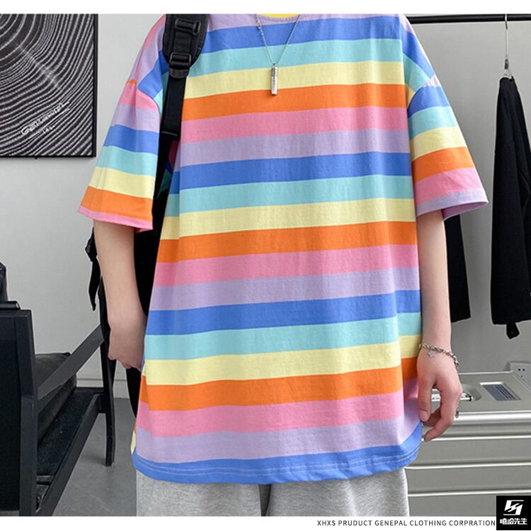 ストライプTシャツ サマー薄手スタイルトップス ルーズカジュアル 大きめサイズ 夏物 ヒップホッププラスサイズ37274389088
