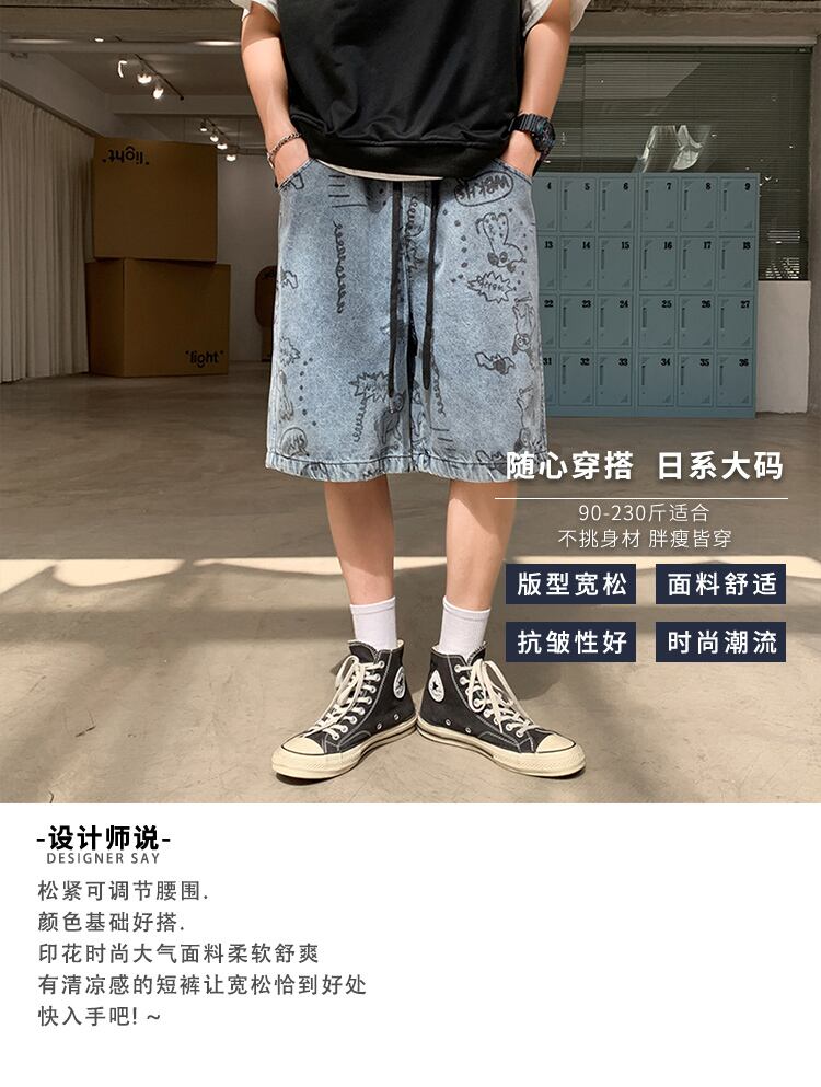 ショーツ サマー薄手ギャザーカジュアルジーンズ スタイルルーズパンツ 大きめサイズ 夏物 ブルマー ヒップホッププラスサイズ56714579076