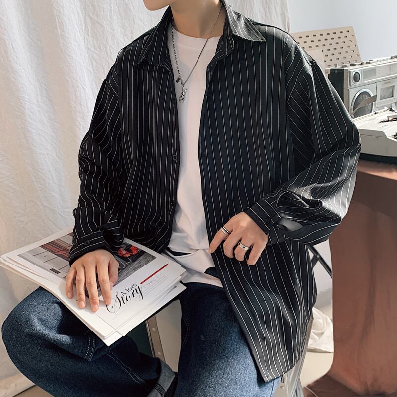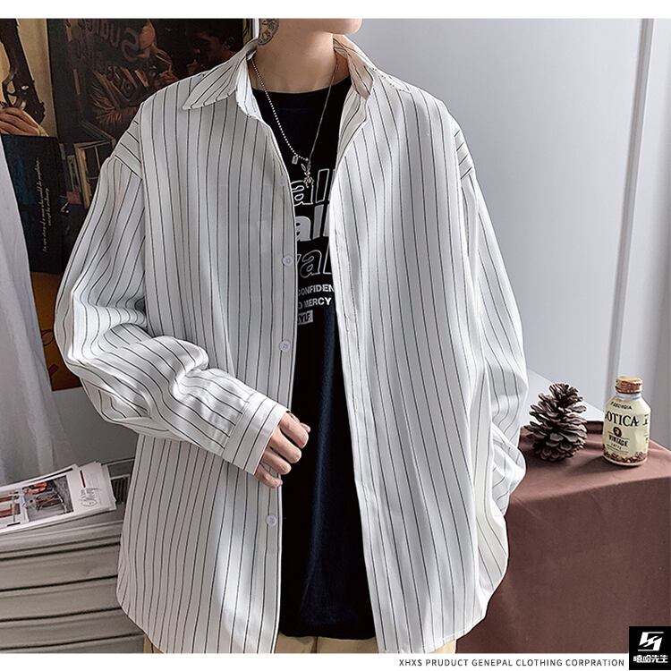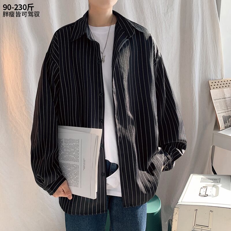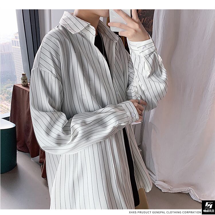 スタンダードストライプシャツ ルーズカジュアルトップス ロング レトロ 大きめサイズ ヒップホッププラスサイズ66789066058