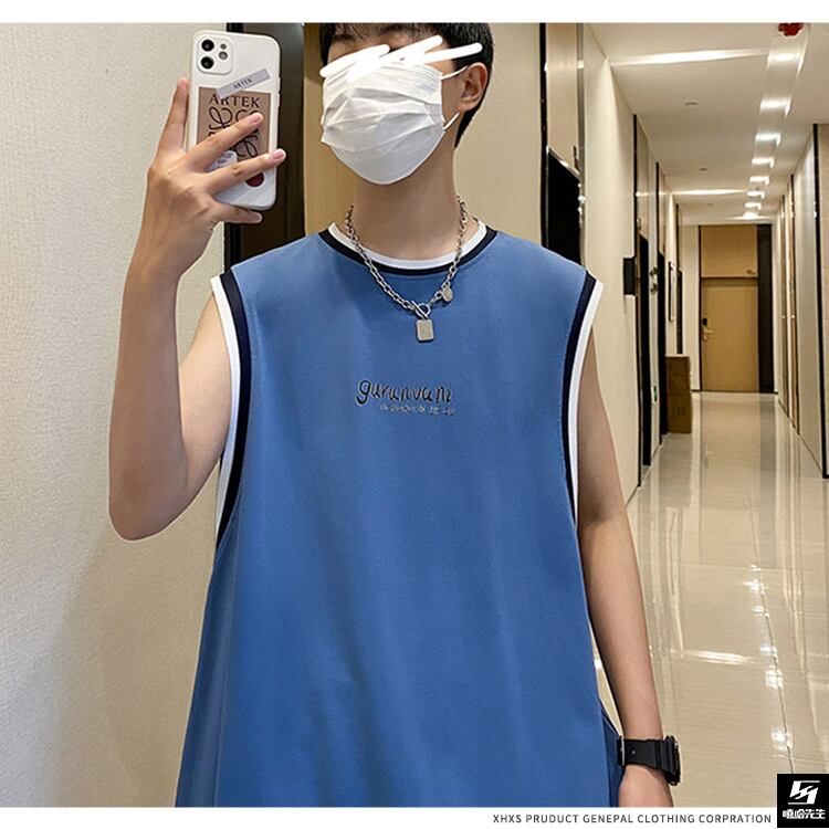 プリント柄サマーノースリーブTシャツ スタイルルーズ 大きめサイズ 夏物 ステッチ ヒップホッププラスサイズ90613796587