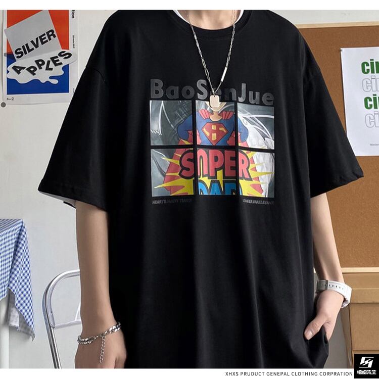 サマー薄手ルーズカジュアルTシャツ プリント コットン 大きめサイズ 夏物 ヒップホッププラスサイズ91957936795