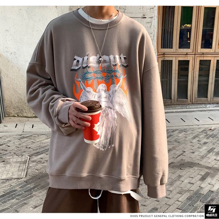 セーター オータムプリントカジュアルルーズジャケット ラウンドネックプルオーバー ロング 大きめサイズ 秋物 Oネック ヒップホッププラスサイズ22210508735