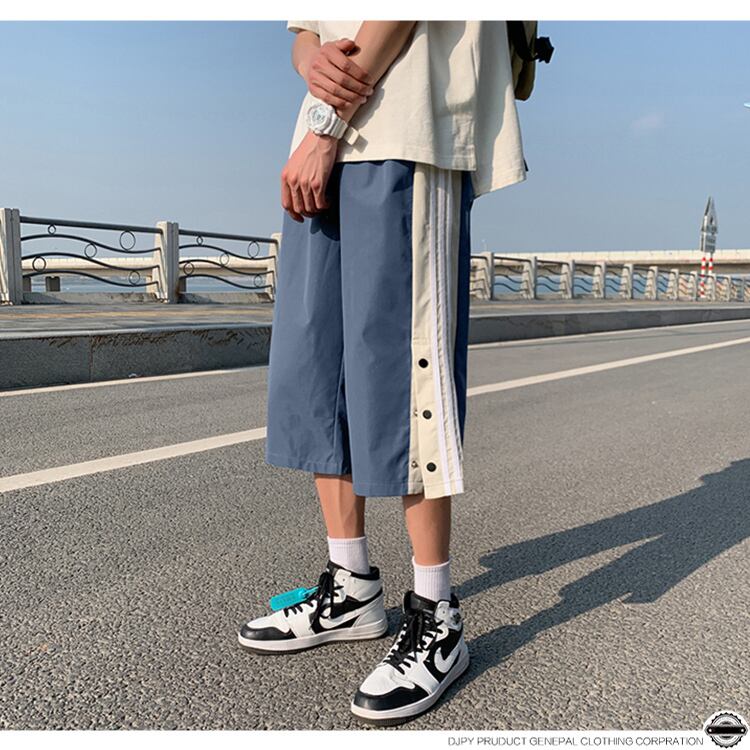 カジュアルクロップドパンツ ルーズサマーショーツ 大きめサイズ 夏物 ブルマー ストライプ ヒップホッププラスサイズ17902591326