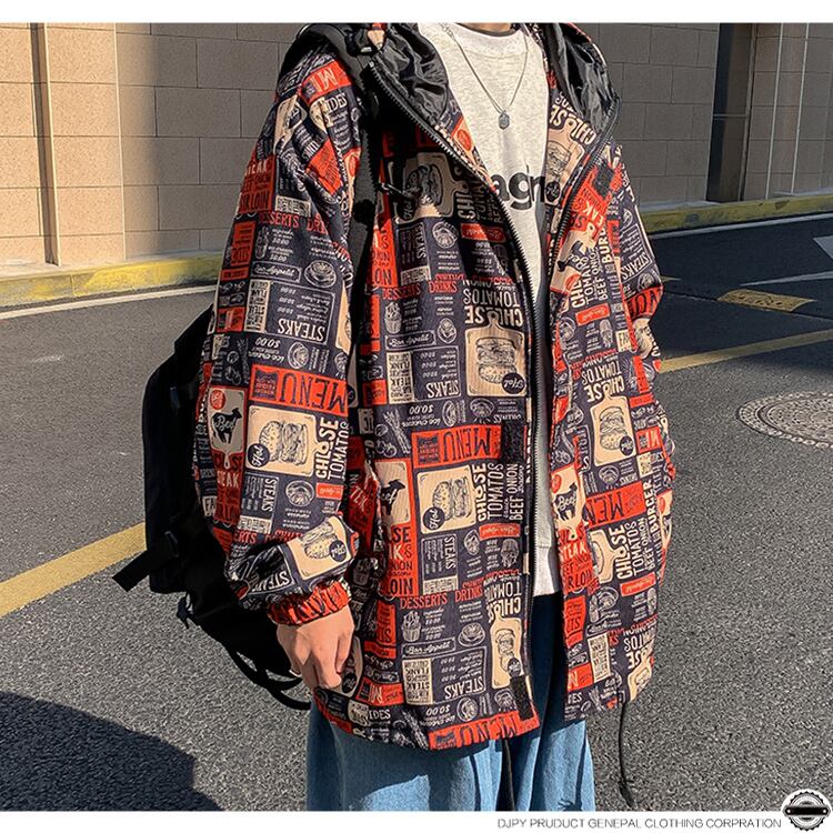 ジャケット ルーズフードプリントスプリングオータム 大きめサイズ 春物 秋物 ヒップホッププラスサイズ31801807848